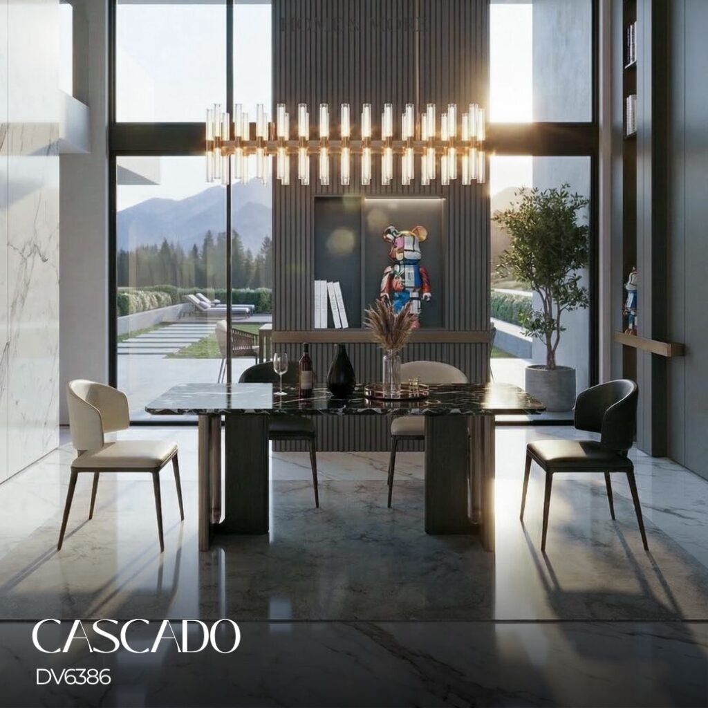 โต๊ะอาหารรุ่น CASCADO สะท้อนความหรูแบบ Modern Luxury ได้อย่างชัดเจนผ่านท็อปสีดำเงา ลายหินที่โดดเด่น ให้ความรู้สึกพรีเมียมตั้งแต่แรกเห็น